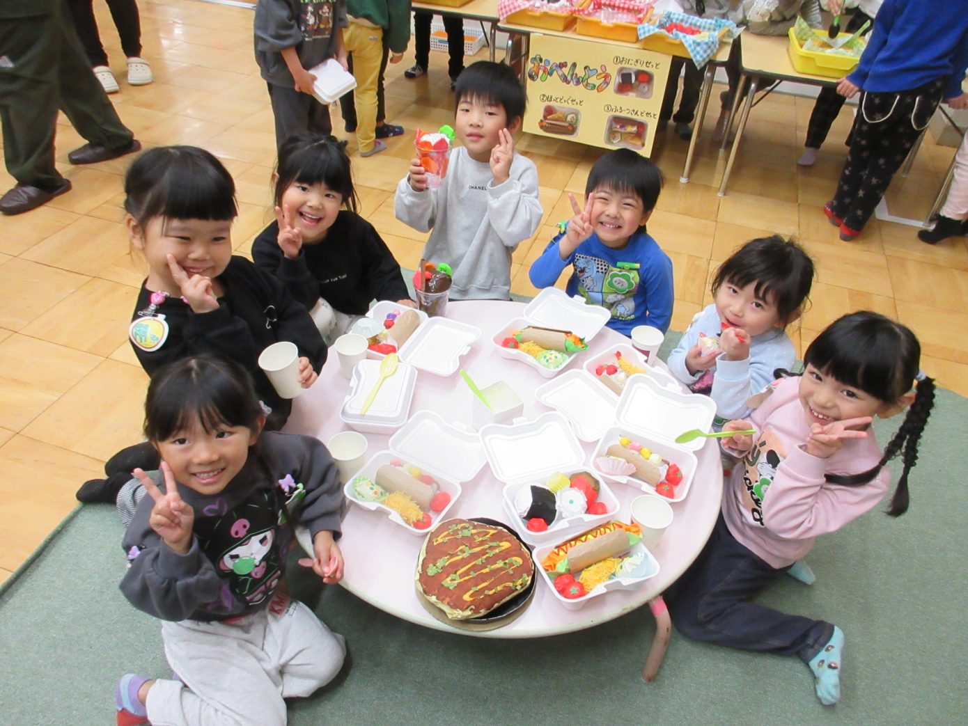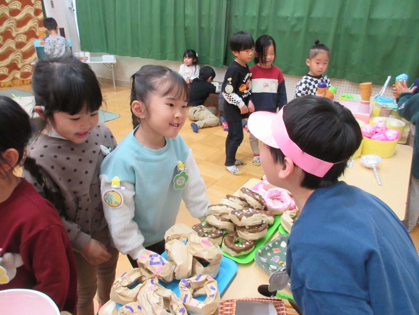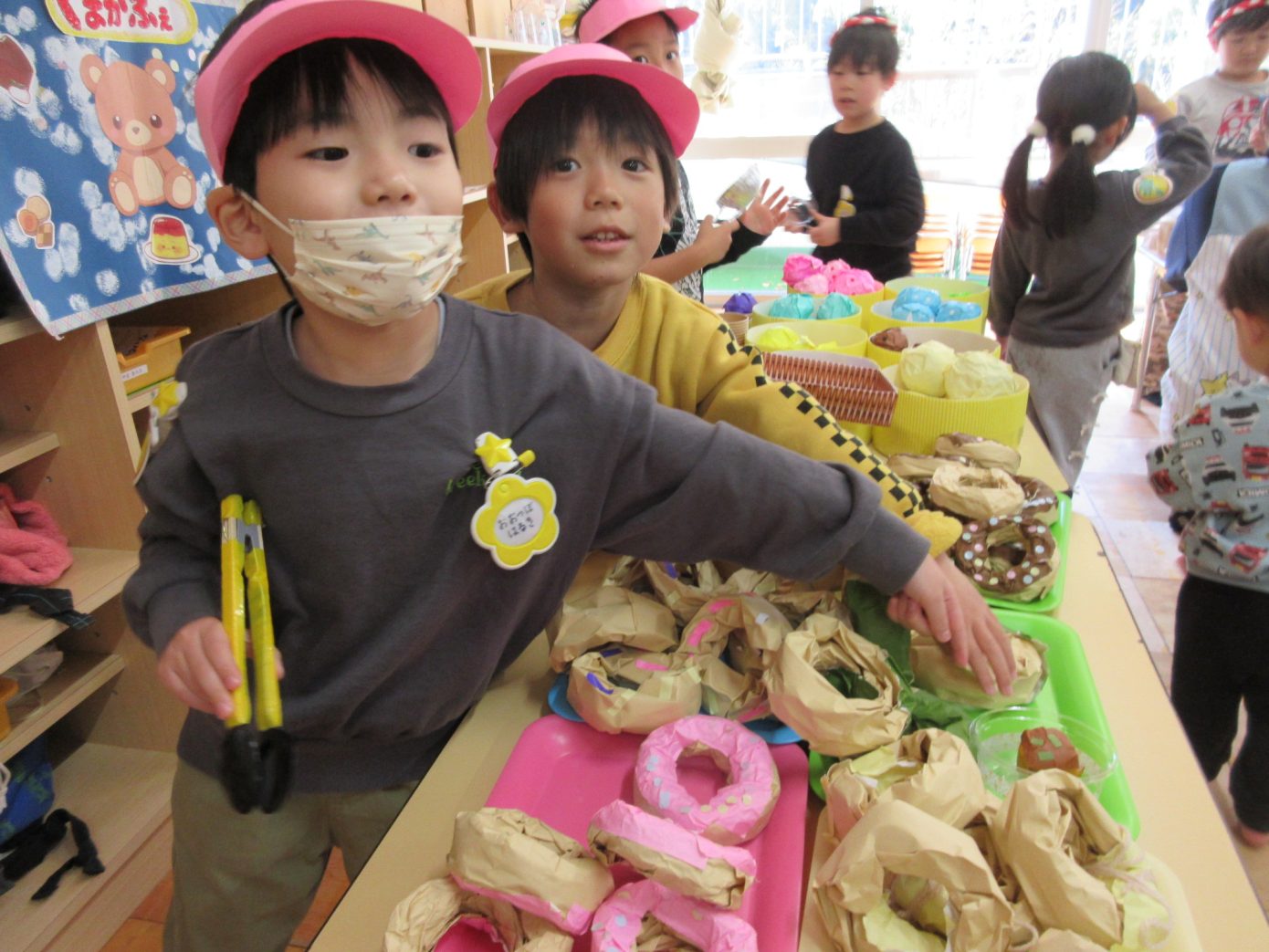 12月4(木)、5日(金)の2日間でお店屋さんごっこを予定していましたが、今年はちょうどインフルエンザが流行してしまい、日程を変更したり内容にも配慮をしたりして、感染対策をしながらの開催となりました。また、今年はどんなことを大切にして子どもたちと一緒にお店屋さんごっこを楽しむかを改めて考え直し、行事の内容を今までのものとは少し変えるなど、子どもたちにとってよりよいものとなっていくようにしていきました。