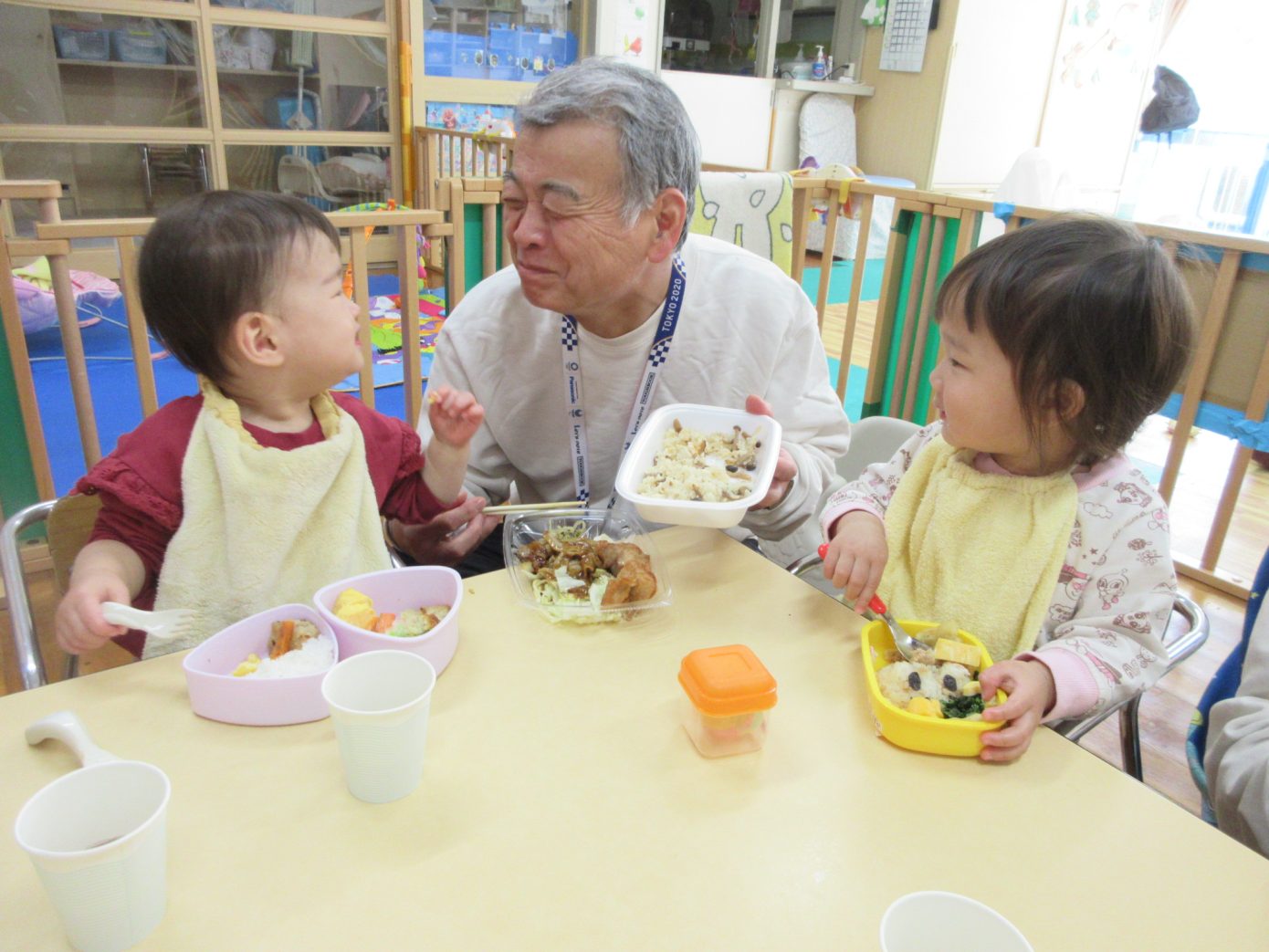 農道へ行ったよ!大好きな先生と一緒にお弁当を食べたよ。美味しいね♡