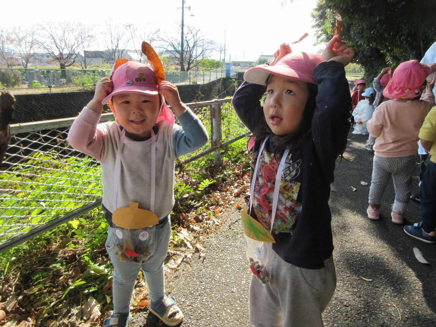 戸石川沿いへどんぐり拾いへ♪どんぐりバックに沢山拾ったね✨