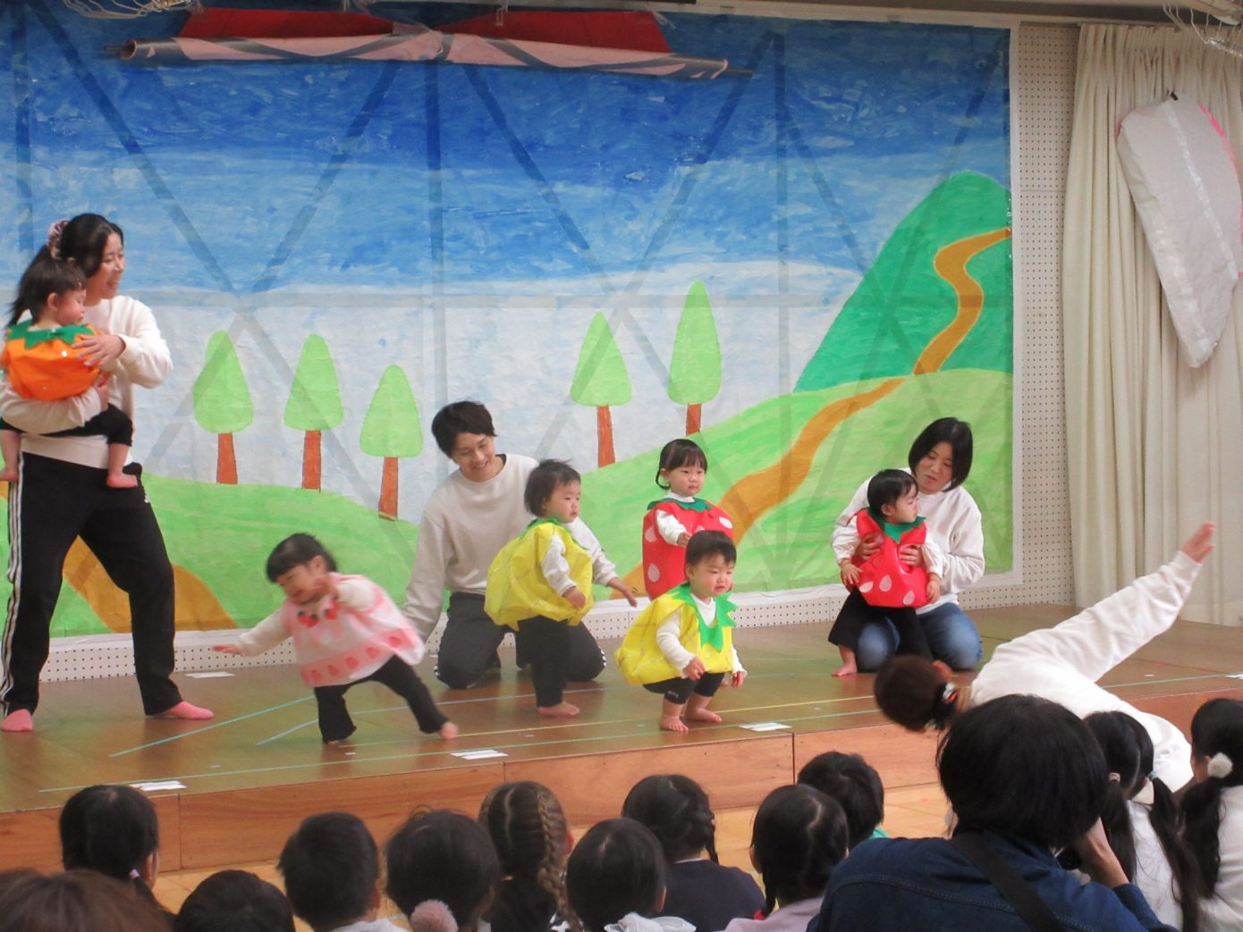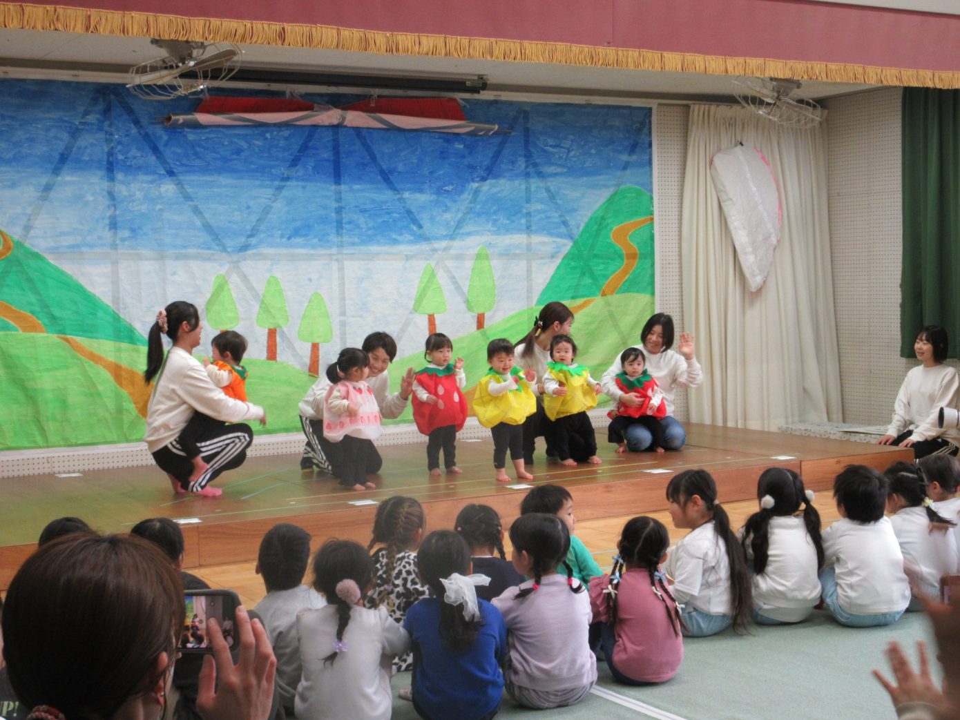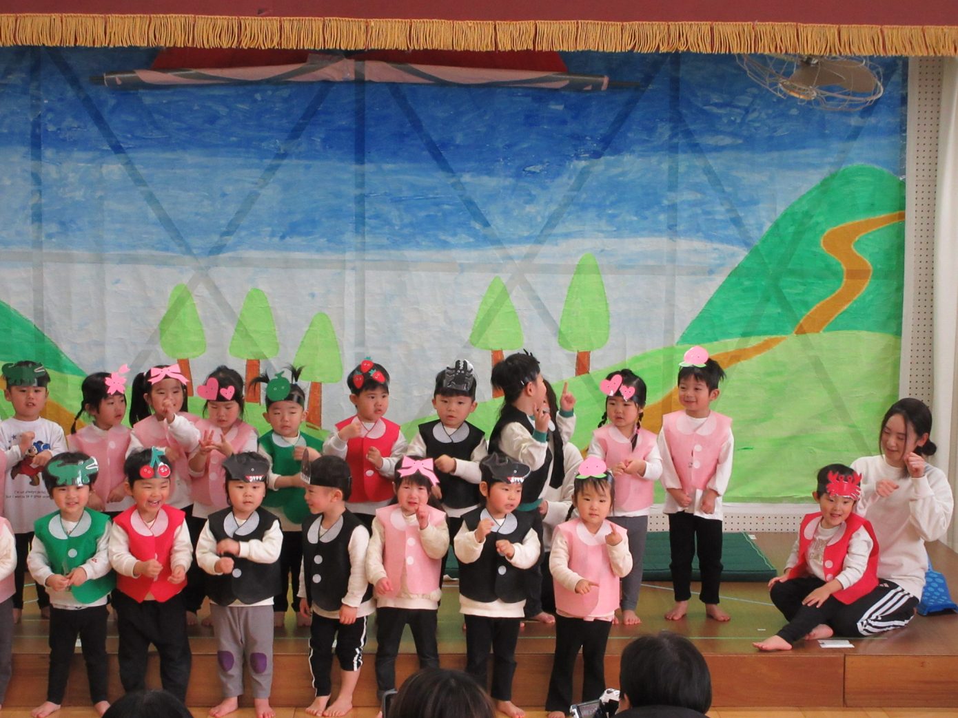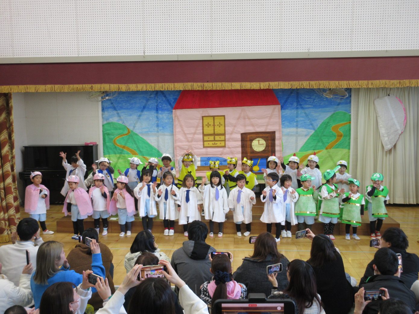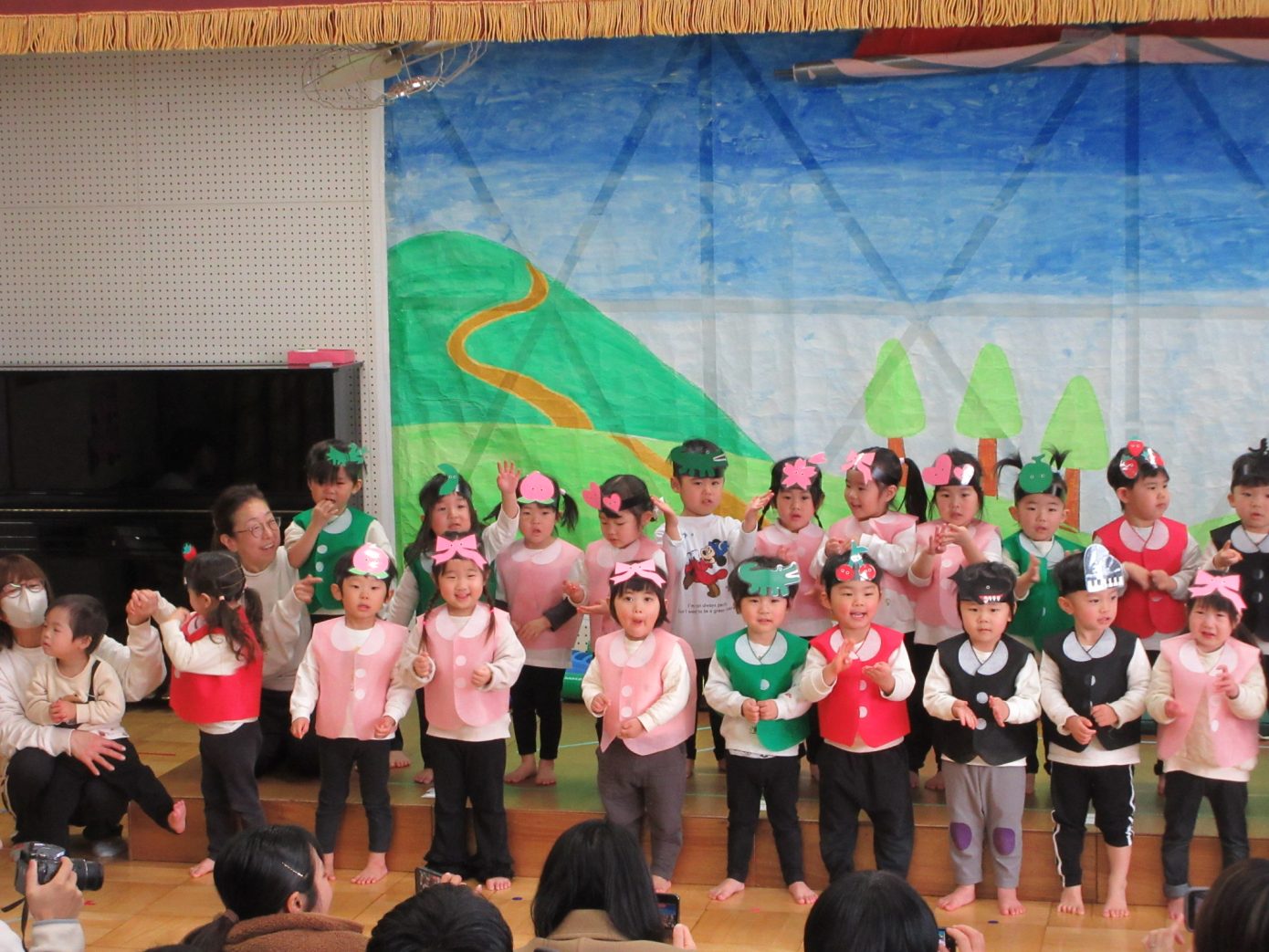 この1年間を通してできるようになったことや、お友だちや先生と一緒に楽しんできたことなどを取り入れながら表現遊び・劇遊びの練習を行ってきました。ちょっぴり泣けてしまったり、ドキドキしたりしながらも最後までとってもよく頑張っていました✨