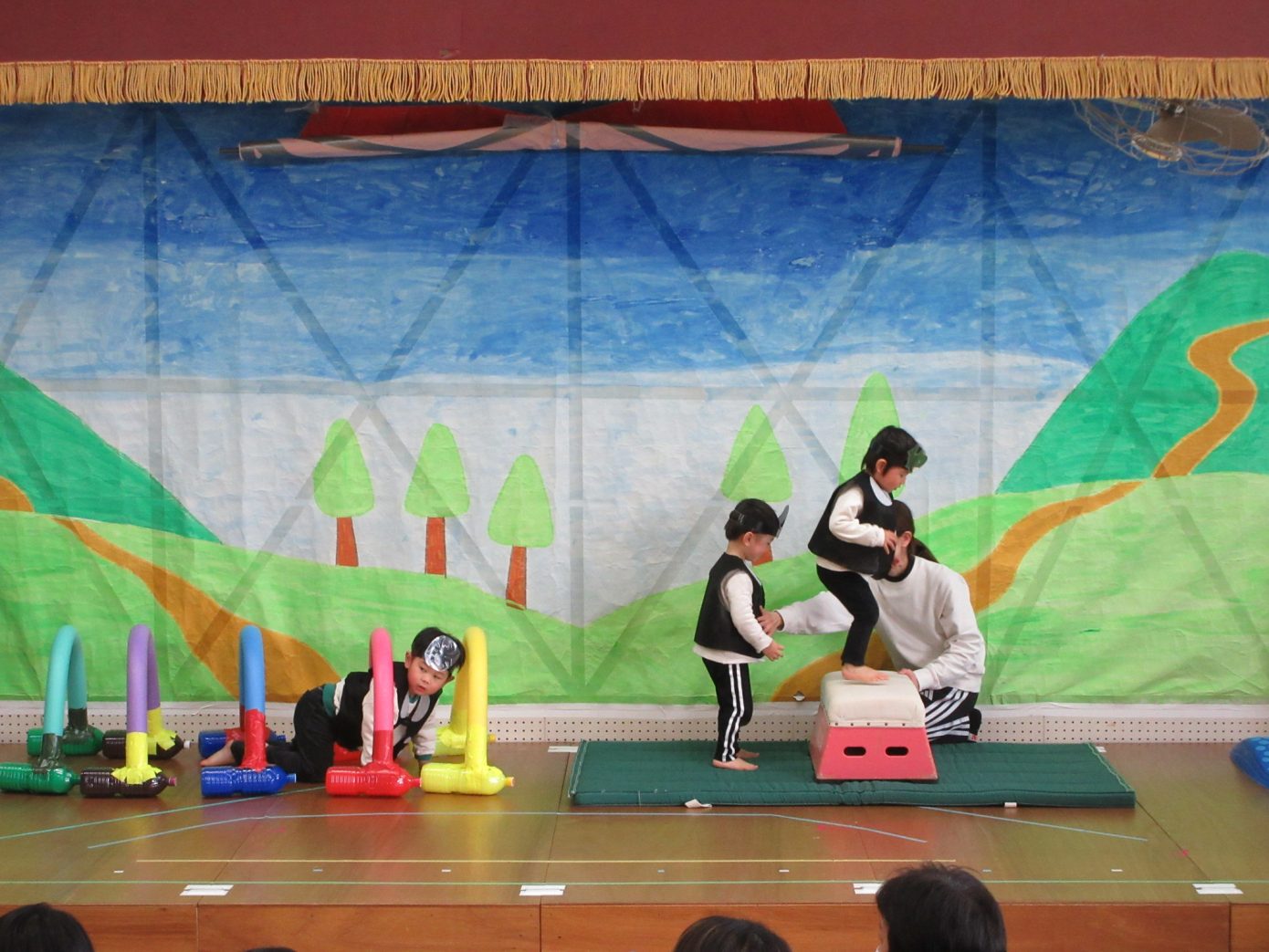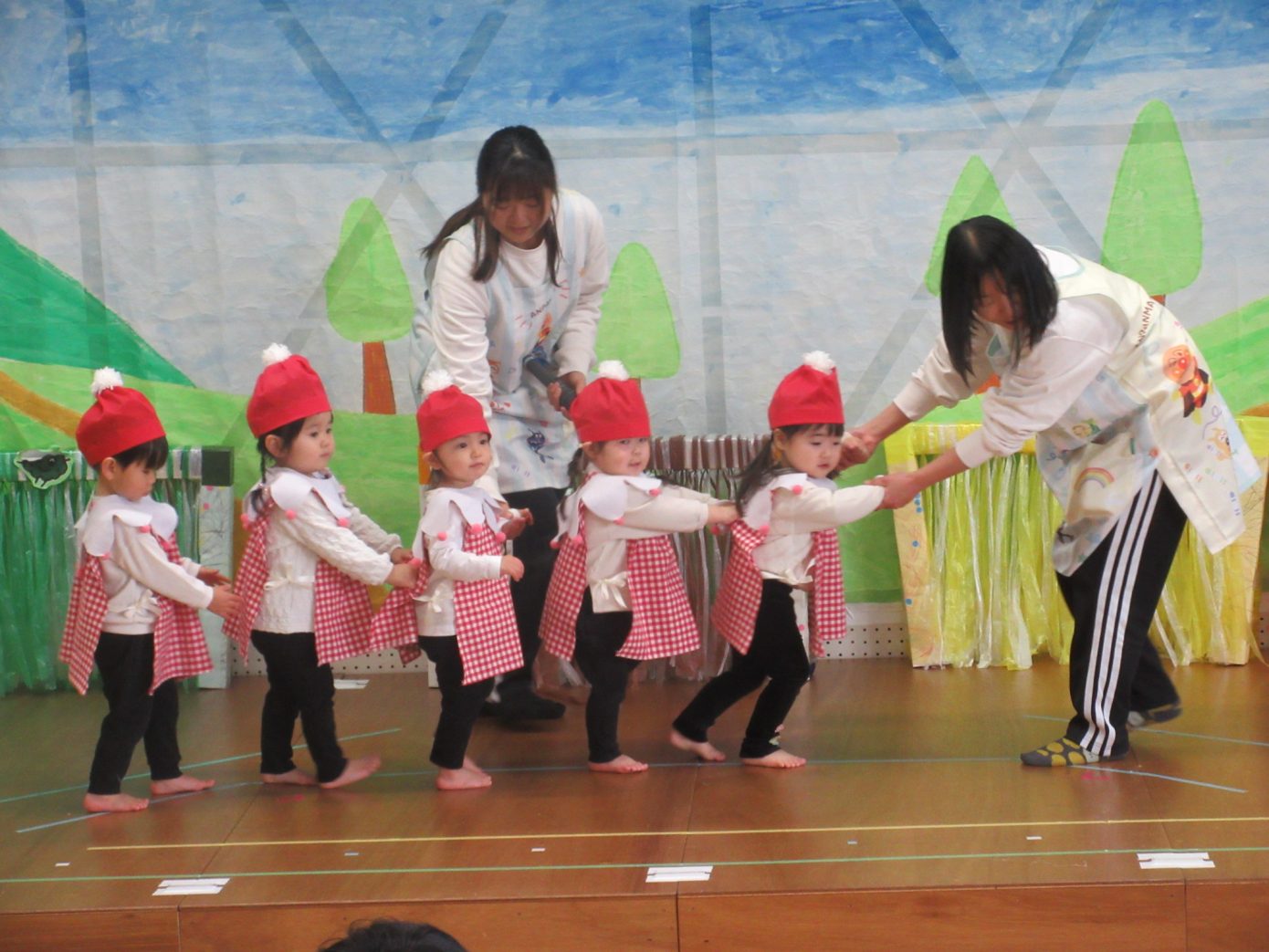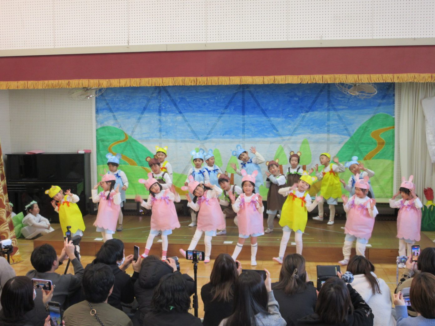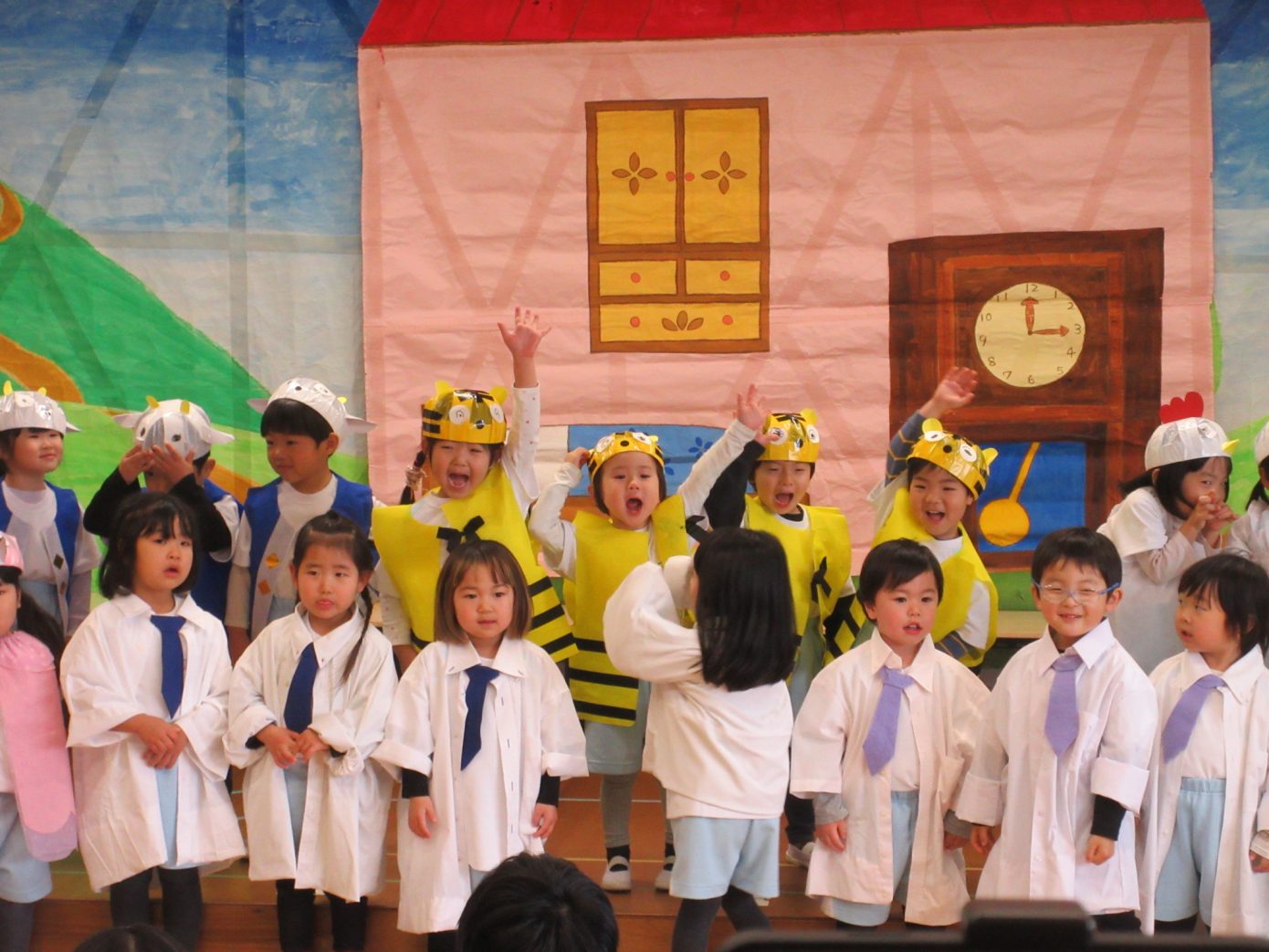 この1年間を通してできるようになったことや、お友だちや先生と一緒に楽しんできたことなどを取り入れながら表現遊び・劇遊びの練習を行ってきました。ちょっぴり泣けてしまったり、ドキドキしたりしながらも最後までとってもよく頑張っていました✨