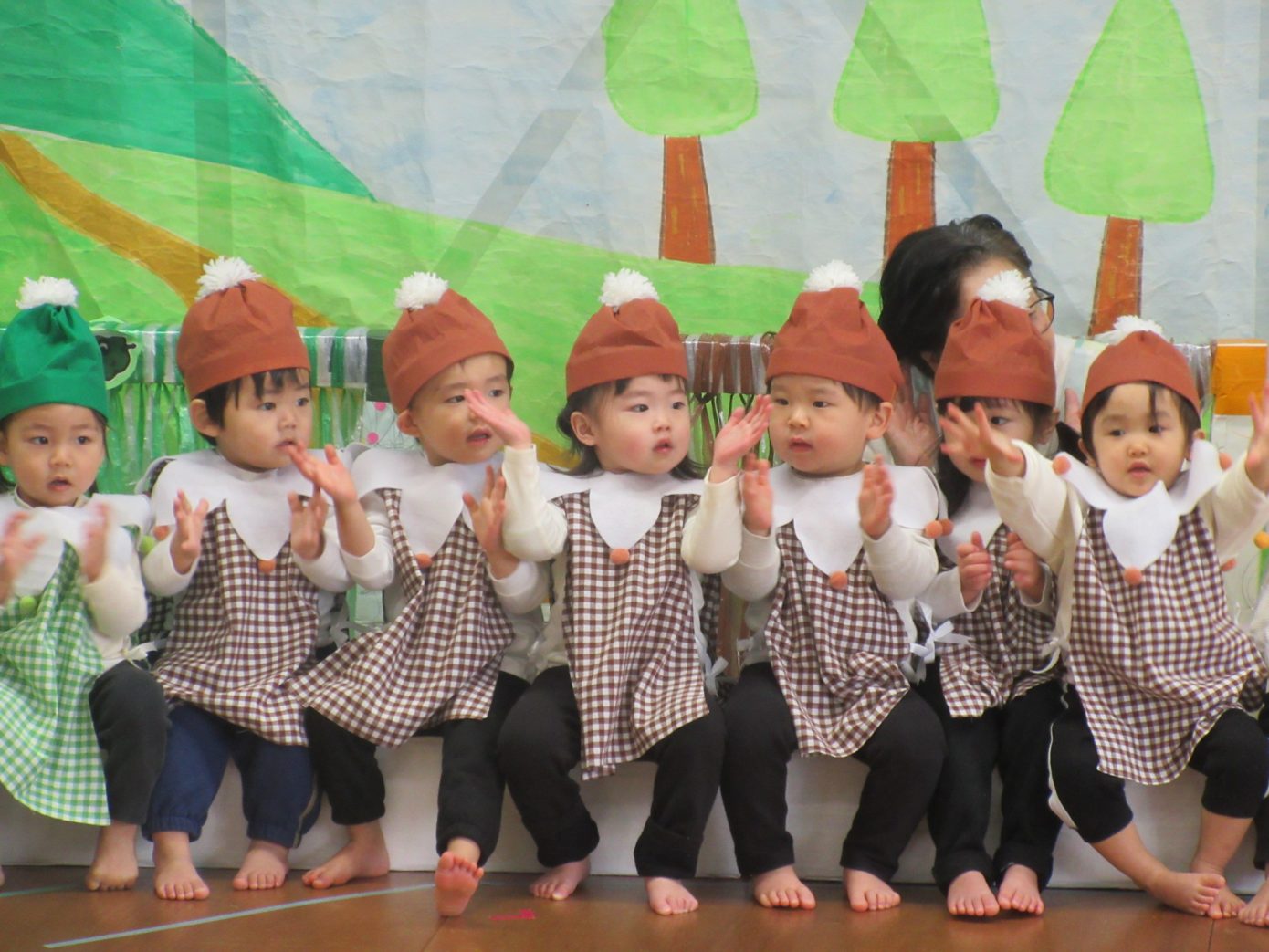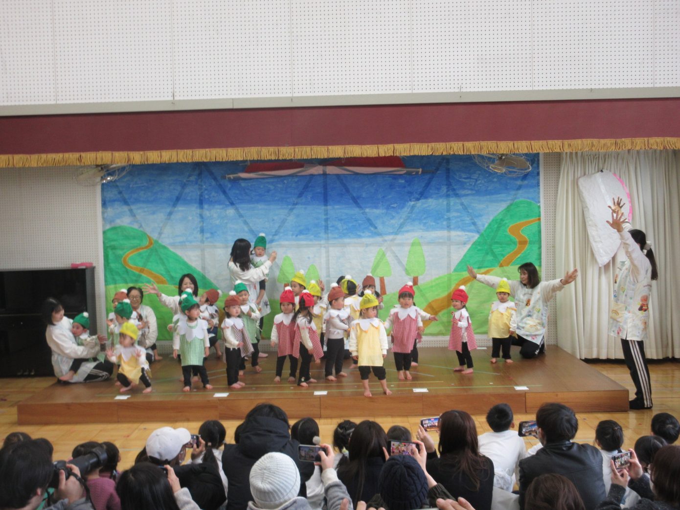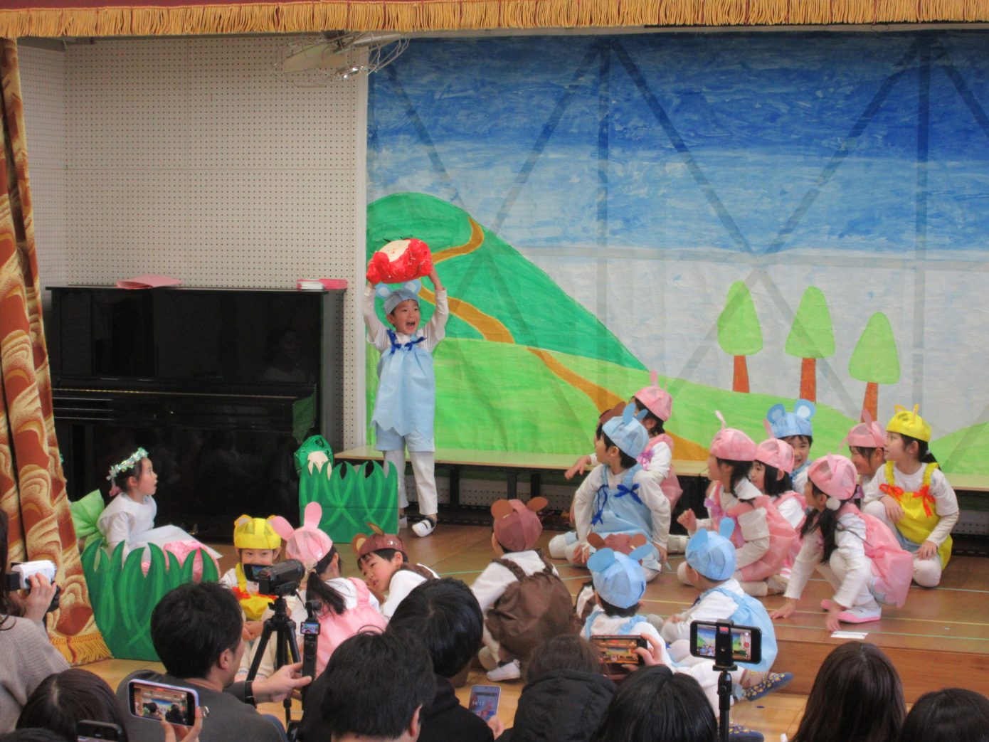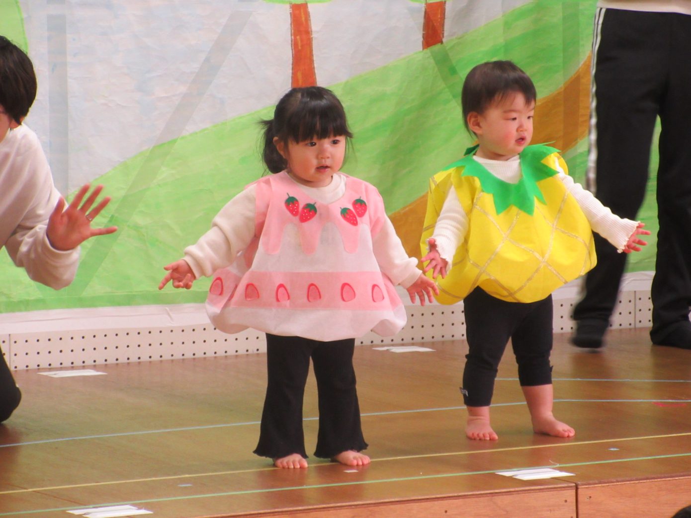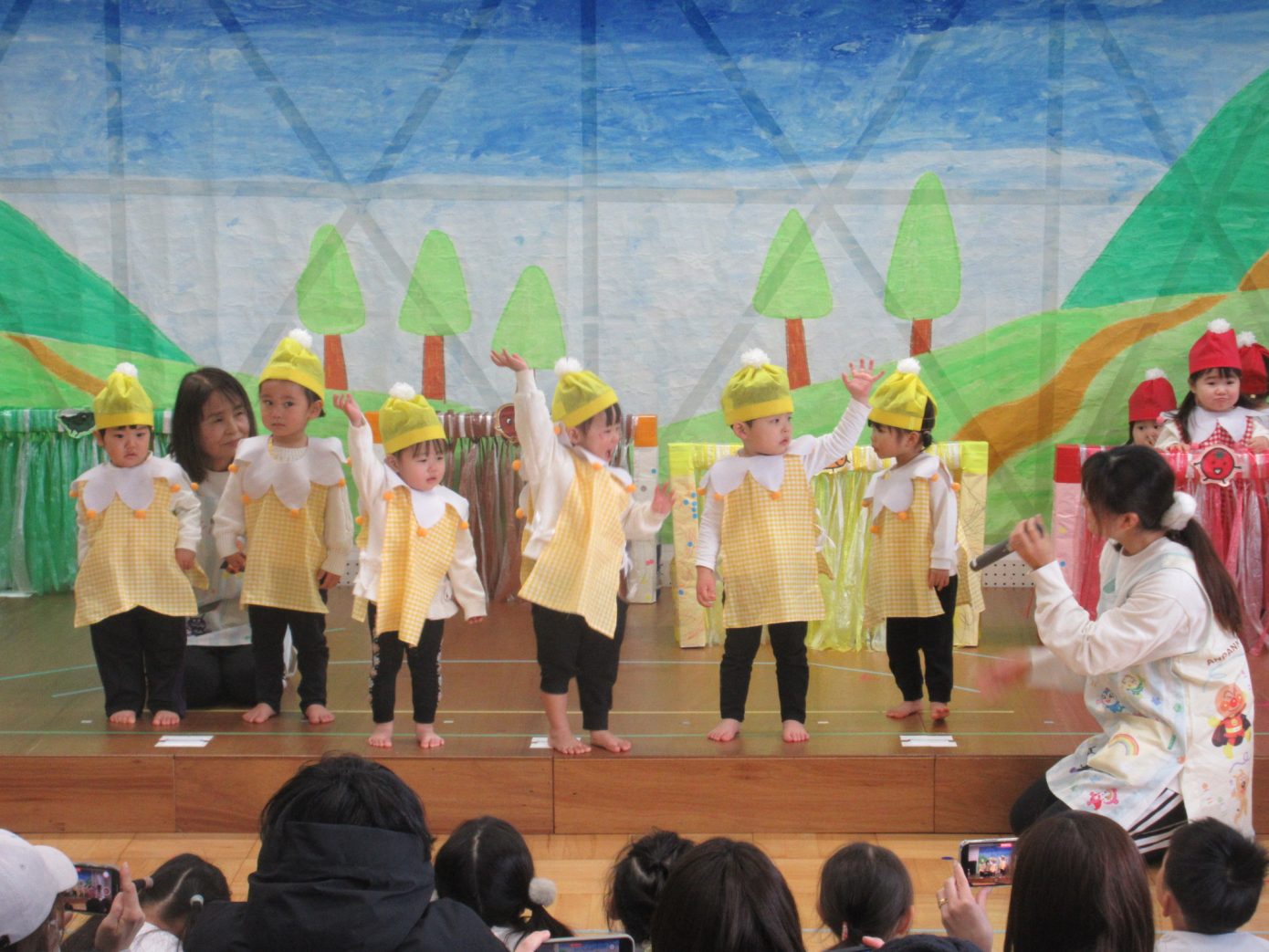 この1年間を通してできるようになったことや、お友だちや先生と一緒に楽しんできたことなどを取り入れながら表現遊び・劇遊びの練習を行ってきました。ちょっぴり泣けてしまったり、ドキドキしたりしながらも最後までとってもよく頑張っていました✨